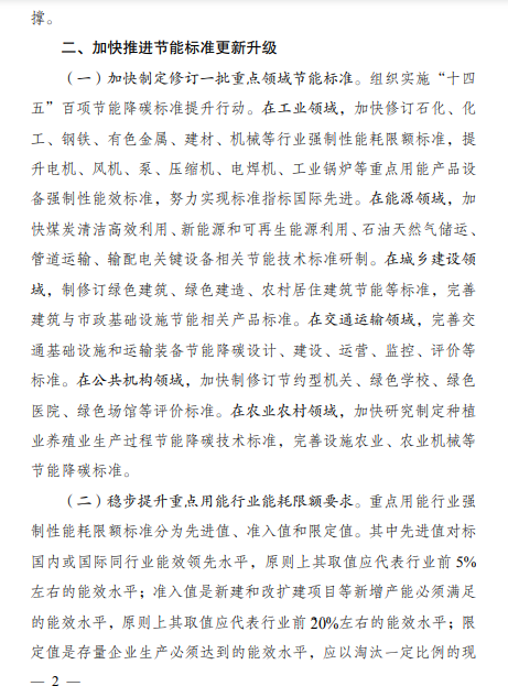 《征求意見稿》還提到,推進實施重點行業(yè)、產業(yè)園區(qū)、城鄉(xiāng)建設、公共機構等節(jié)能降碳工程,支持重點領域和行業(yè)節(jié)能降碳改造,推動重要產品設備更新改造。各地區(qū)要對標節(jié)能標準要求,加大對重點行業(yè)和產品設備節(jié)能降碳更新改造的資金、政策等支持力度。