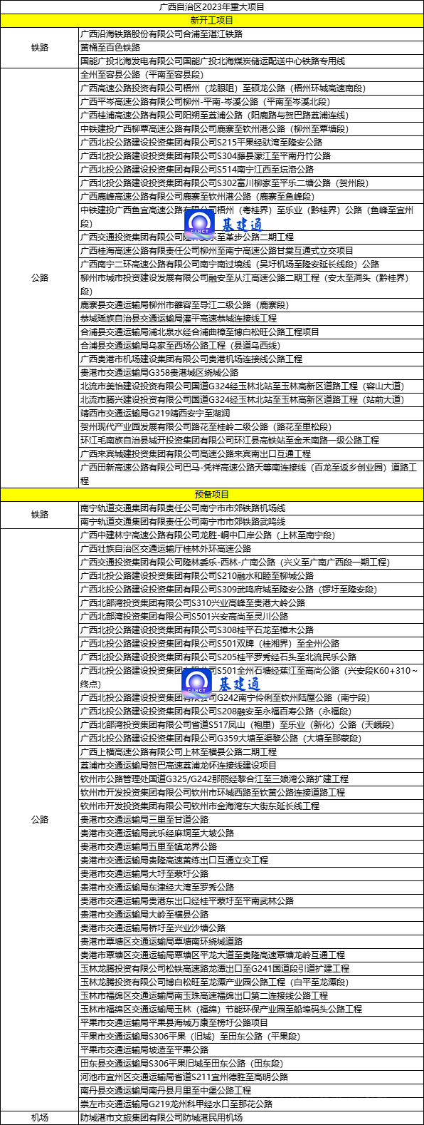 廣西自治區(qū): 2023年廣西自治區(qū)重大項(xiàng)目共2528項(xiàng),其中,新開工項(xiàng)目303項(xiàng),預(yù)備項(xiàng)目681項(xiàng)。交通類基礎(chǔ)設(shè)施工程有: