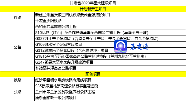 甘肅�。� 2023年甘肅省省列重大建設(shè)項(xiàng)目287個,其中計(jì)劃新開工項(xiàng)目119個,預(yù)備項(xiàng)目20個,其中交通類基礎(chǔ)設(shè)施工程有: