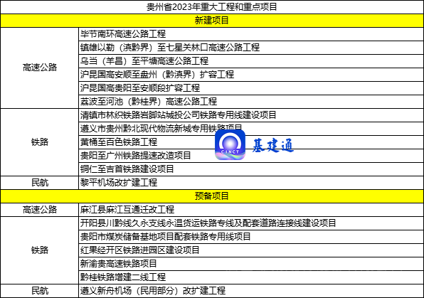 貴州�。� 2023年貴州省共安排省重大工程和重點(diǎn)項(xiàng)目4158個,其中有223個交通基礎(chǔ)設(shè)施工程,而新建鐵路、高速公路和民航項(xiàng)目有: