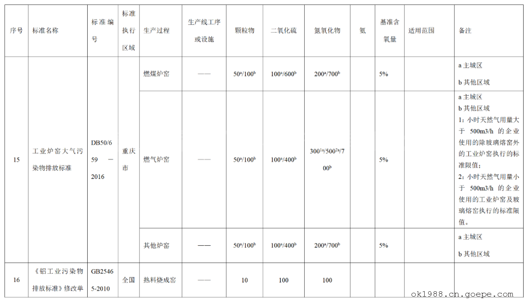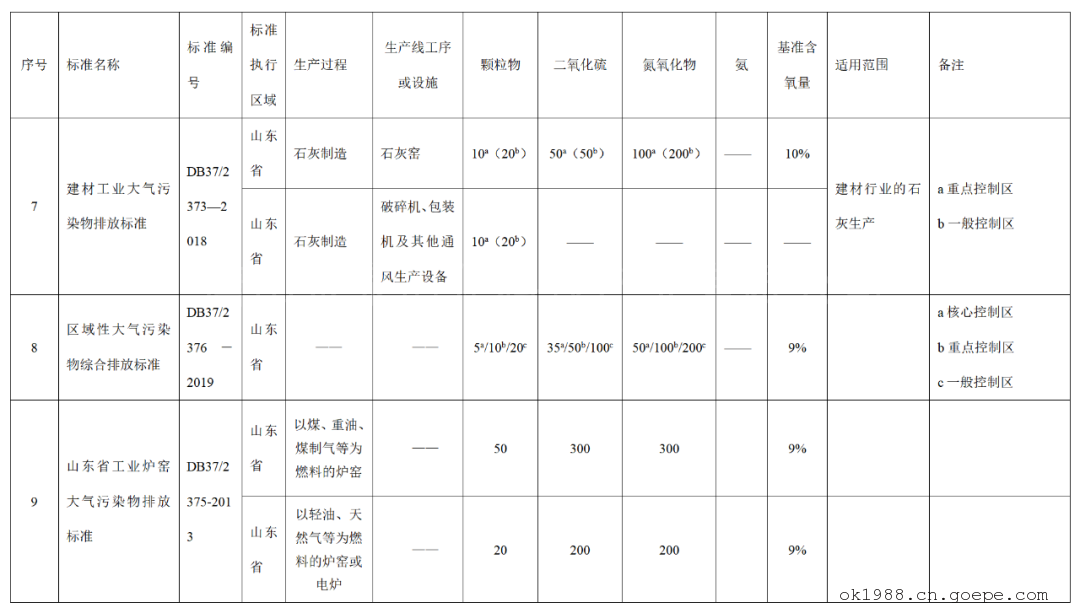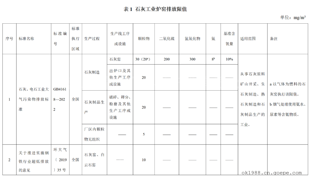 全國石灰窯大氣污染物排放標(biāo)準(zhǔn)對比