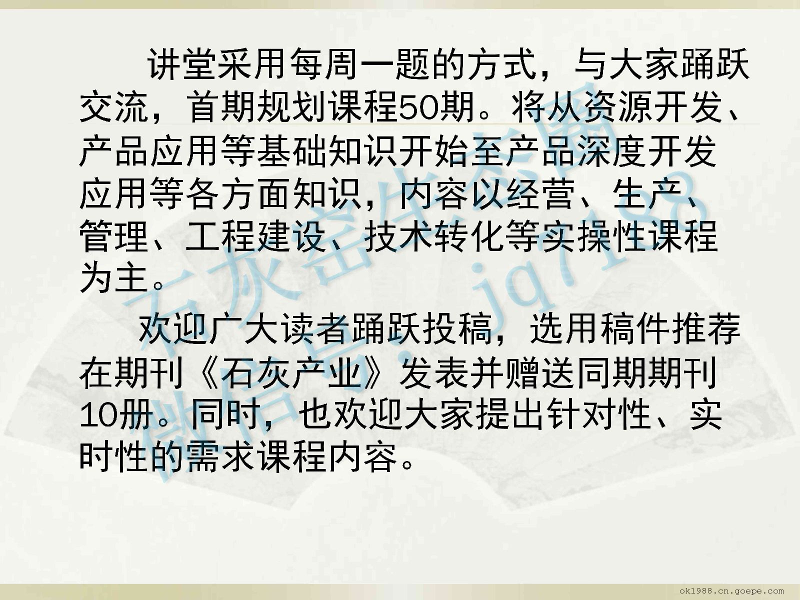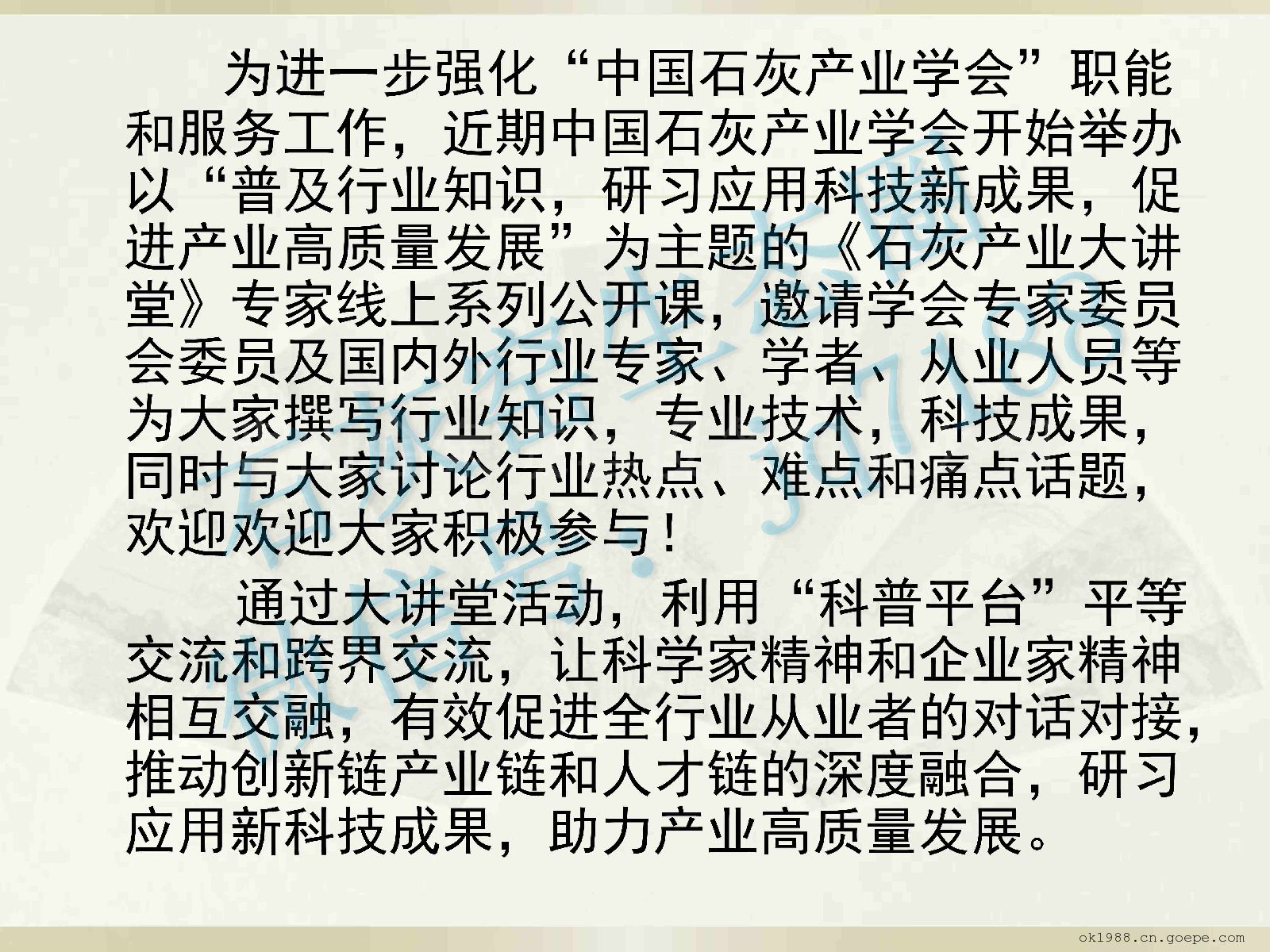 《石灰產業(yè)大講堂》002期|生產石灰用石料選用及檢測方法(07月14日)