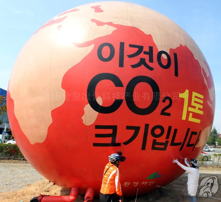 2011年10月17日 《聯(lián)合國防治荒漠化公約》第十次締約方大會在韓國召開。設(shè)置在會展中心旁邊的“防治荒漠化體驗(yàn)館”展出了地球造型的大型球體,上面寫著“這是一噸二氧化碳的大小”。