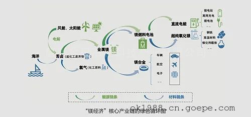 “鎂經(jīng)濟(jì)”是新能源與新材料相融合的綠色循環(huán)經(jīng)濟(jì)。“鎂經(jīng)濟(jì)”綠色循環(huán)產(chǎn)業(yè)鏈的源頭,從原料講是取之不盡的海鹵水,從能源講是用之不竭的可再生能源。利用鎂既是工業(yè)材料又是能源載體的雙重屬性,“鎂經(jīng)濟(jì)”可同時(shí)實(shí)現(xiàn)新能源和新材料兩大產(chǎn)業(yè)的綠色循環(huán)、優(yōu)勢整合:既解決了風(fēng)光電的儲能難題,又將無法處理的鹽化工行業(yè)廢棄物苦鹵“變廢為寶”,變成可帶動國民經(jīng)濟(jì)眾多領(lǐng)域?qū)崿F(xiàn)產(chǎn)業(yè)升級的重要基礎(chǔ)材料。