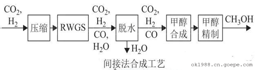 目前CO2加氫合成甲醇的主流工藝為一步法制甲醇,即直接以CO2和氫氣為原料,通過壓縮、合成、氣體分離、精餾等單元制成甲醇。其反應(yīng)方程式如下: 目前主流的技術(shù)路徑是一步法直接制甲醇工藝,即直接以CO2和H2為原料,通過壓縮、合成、氣體分離、精餾等單元制成甲醇。而基于RWGS的兩步法制甲醇相關(guān)技術(shù)路徑由于反應(yīng)步驟多、能效低、對(duì)大型反應(yīng)裝置設(shè)計(jì)建造的難度高,因此不適合于大規(guī)模工業(yè)化應(yīng)用。 CO2加氫除產(chǎn)生甲醇外,也可能生成CO、碳?xì)浠衔铮ㄈ缂淄�、乙烷)、多碳含氧化合物(如二甲醚、乙醇)等副產(chǎn)物,降低甲醇的選擇性和產(chǎn)率。因此開發(fā)高活性、高選擇性和高穩(wěn)定性的催化劑是CO2合成甲醇工業(yè)化應(yīng)用的關(guān)鍵。