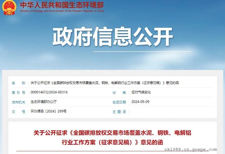 9月9日,生態(tài)環(huán)境部發(fā)布《全國(guó)碳排放權(quán)交易市場(chǎng)覆蓋水泥、鋼鐵、電解鋁行業(yè)工作方案(征求意見稿)》(以下簡(jiǎn)稱《方案》),擬從2024年度起,將水泥、鋼鐵、電解鋁納入全國(guó)碳排放權(quán)交易市場(chǎng)管理。