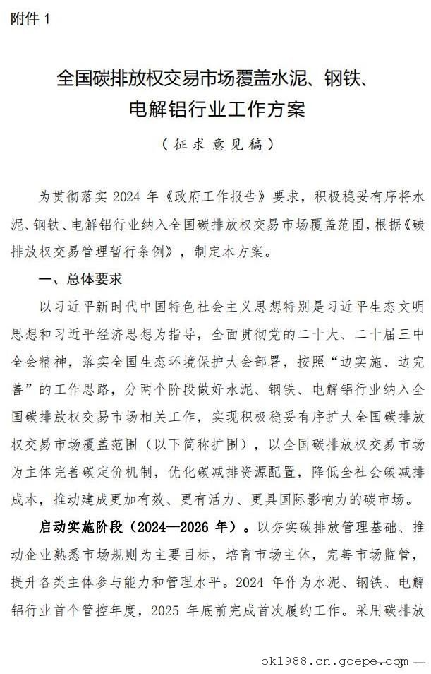 附件:1.全國(guó)碳排放權(quán)交易市場(chǎng)覆蓋水泥、鋼鐵、電解鋁行業(yè)工作方案(征求意見稿)