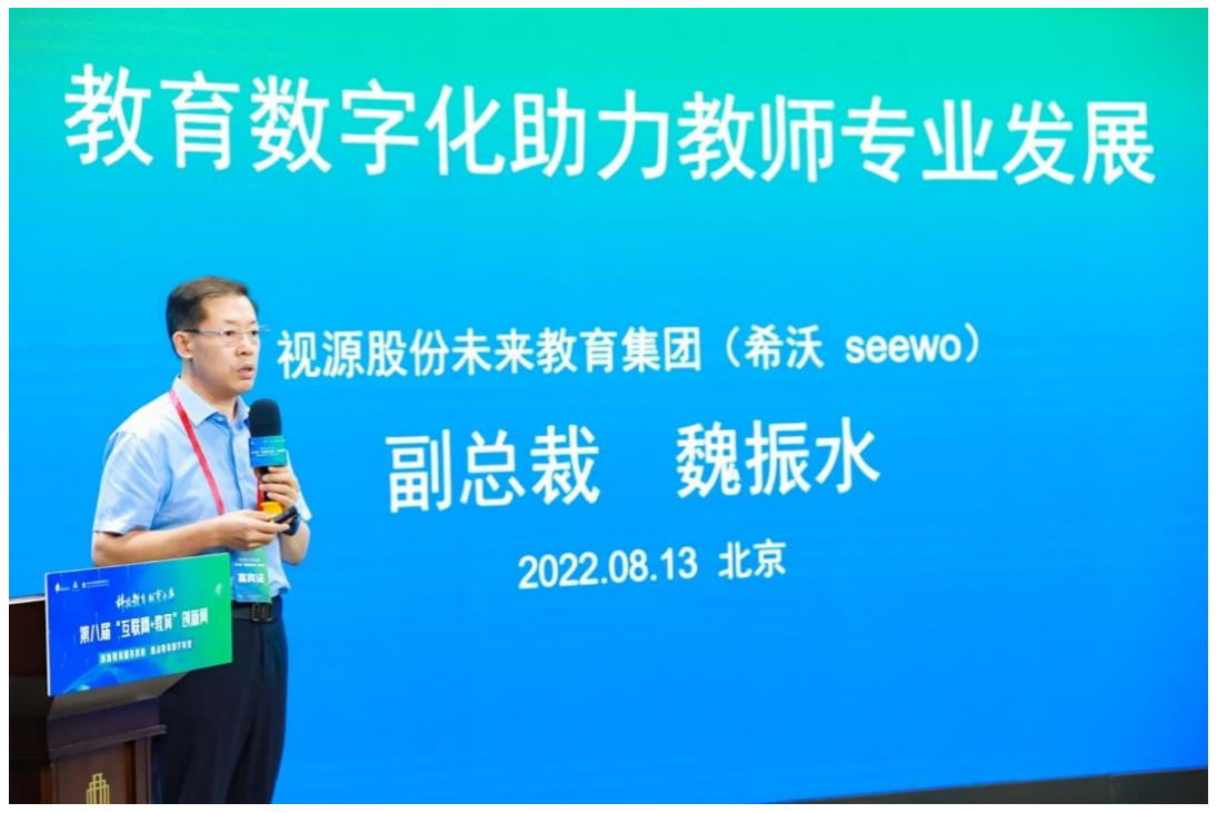 創新教育服務供給,推動教育數字轉型。近日,由北京市海淀區人民政府主辦、中關村互聯網教育創新中心承辦的第八屆“互聯網+教育”創新周在北京開幕,來自教育行業主管部門、研究機構和企業的代表及專家學者,將在7天內就教育數字化轉型新路徑進行深入研討。在會議開幕式上,作為技術創新力量,視源股份未來教育集團(希沃) 副總裁魏振水發表主題演講,分享了希沃在推進教育數字化、助力教師專業發展方面的思考和實踐。