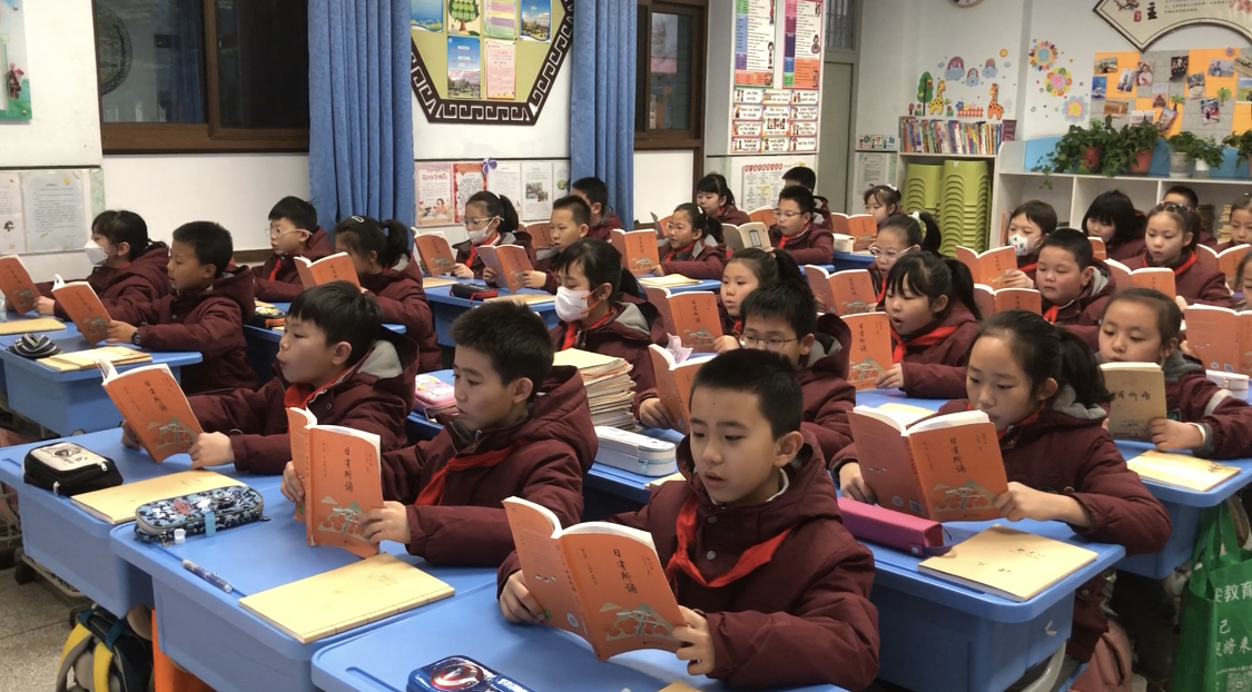 誦讀課上,教師們按照“復(fù)習(xí)鞏固-新課導(dǎo)入-熟悉文本-解釋大意-深入誦讀”的流程,遵循“反復(fù)誦讀,不求甚解”的原則進(jìn)行教學(xué)。每天20分鐘的誦讀,從以往枯燥的授課,變?yōu)楹?/span>學(xué)生們一起讀詩、聊詩、背詩、寫詩,教師們深深領(lǐng)悟到,進(jìn)行兒童閱讀不僅是為孩子,也是對自我兒童性和內(nèi)心沉靜性的磨練。