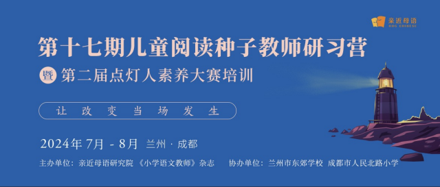 2024年7月-8月,親近母語研究院將與《小學語文教師》雜志合作舉辦第十七期兒童閱讀教師研習營暨第二屆點燈人素養大賽培訓。歡迎所有有志于在兒童閱讀領域發光發熱的教師,包括小學語文教師、其他學科負責閱讀工作的教師,以及素質類教培機構、閱讀館、繪本館等閱讀教育和推廣領域的從業人員,積極參與本期研習營。