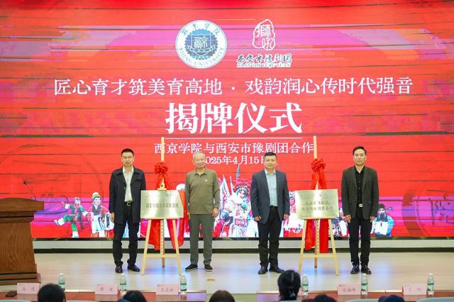 4月15日,西京學院與西安市豫劇團有限責任公司舉行“戲曲傳承教育基地”與“美育實踐基地”揭牌儀式,雙方以校企協同育人模式探索傳統文化與現代教育的深度融合,深化產教融合,傳承戲曲文化,共同書寫藝術與教育協同育人的新篇章,為高校五育并舉實踐注入新內涵。