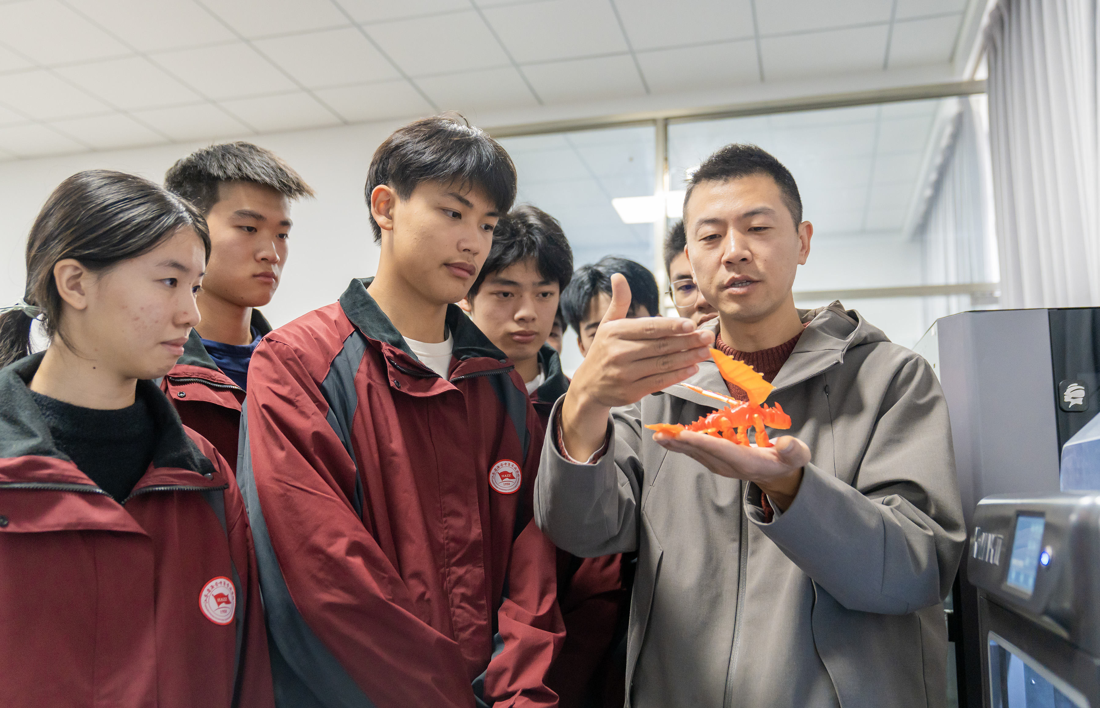 11月17日,江蘇省海安中等專業學校的學生們在老師的指導下進行3D打印實訓。該校深入推進產教融合和科教融匯,針對性地開設3D打印、工業機器人應用、數控技術等特色課程,不斷提升學生的綜合職業技能水平和實操能力,促進人才供需高效匹配和職業教育高質量發展。(中國教育報-中國教育新聞網通訊員 翟偉凱 攝)