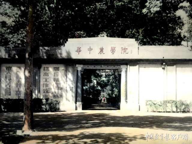 正是那一年,學校邀請毛澤東的老師徐特立題寫了“華中農學院”校名。今天,徐特立題寫的校名仍鐫刻在主樓的門楣上,見證著5平方公里山水校園的紅色記憶。
