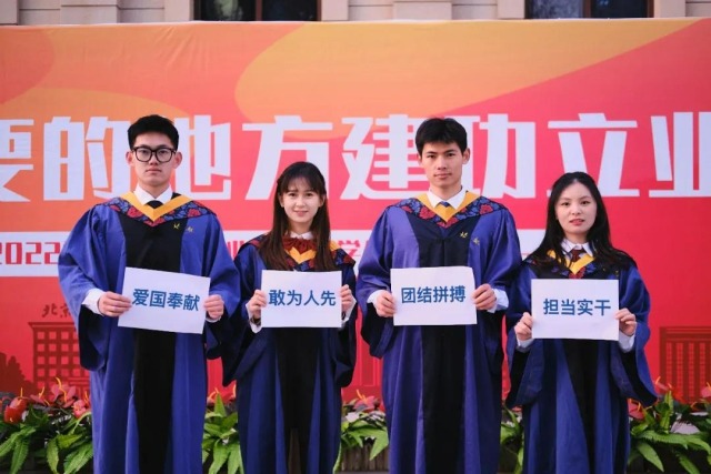 “中國的答卷很輝煌”“北航的答卷很精彩”“你們的答卷很亮眼”,校長徐惠彬帶領(lǐng)全體畢業(yè)生深情回顧了意義非凡、載入史冊、值得銘記的2021年。在全體畢業(yè)生即將向未來出發(fā)之際,徐惠彬勉勵大家要心懷家國,傳承弘揚(yáng)空天報(bào)國精神,把服務(wù)國家作為最高追求,把為國出力、扎根人民作為一輩子的志向,讓未來更有價值;要矢志創(chuàng)新,賡續(xù)北航人敢為人先的創(chuàng)新精神,努力做到從0到1、從無到有,讓未來贏得主動;要潛心專注,選定領(lǐng)域后深深扎根,保持耐心和定力,讓未來成就卓越。