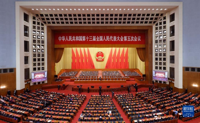 3月11日,第十三屆全國人民代表大會第五次會議在北京人民大會堂閉幕。新華社記者 劉彬 攝