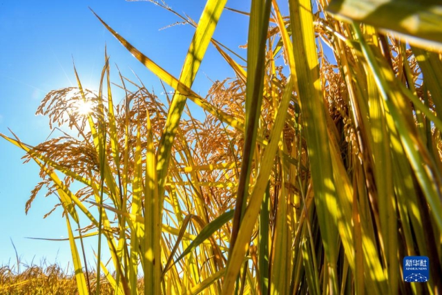這是2021年10月12日在吉林省吉林市永吉縣萬昌鎮拍攝的水稻。新華社記者 張楠 攝