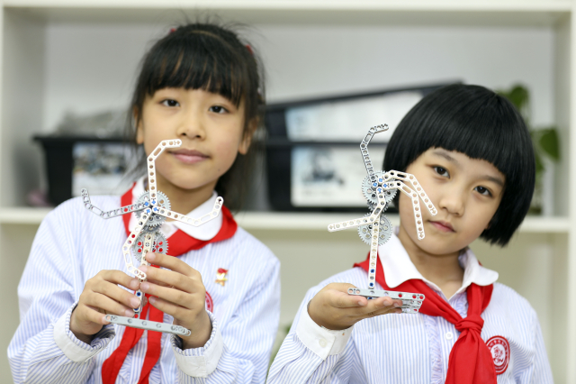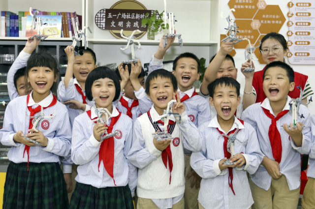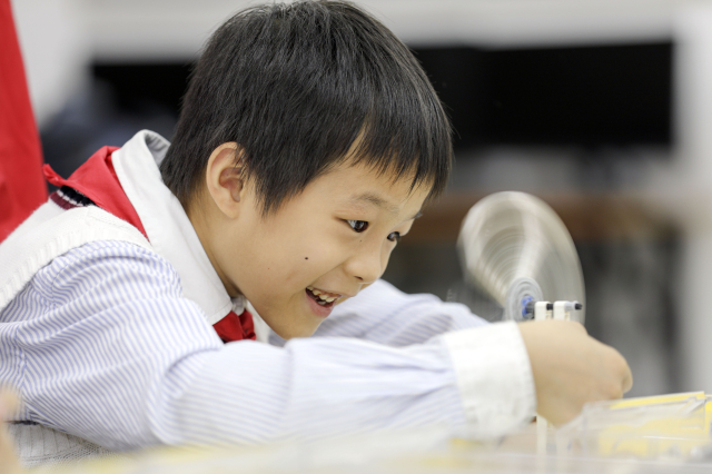 6月16日,福建省福州市鼓樓區(qū)安泰街道五一廣場社區(qū)的“四點半”科普興趣課堂,科普志愿者正在指導(dǎo)斗南小學(xué)的學(xué)生做小風(fēng)扇。謝貴明 攝