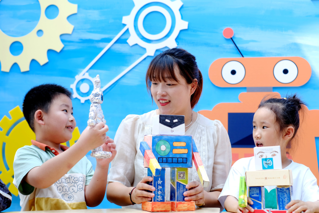 6月15日,浙江省湖州市長興縣水口鄉(xiāng)中心幼兒園開展“倡導環(huán)保 樂享科技”手工制作活動。老師指導小朋友們合理利用易拉罐、牙膏盒、舊玩具等廢舊物品制作科技環(huán)保作品,讓小朋友們從小樹立“愛科學,愛創(chuàng)造,愛環(huán)保”的理念。許斌華 攝