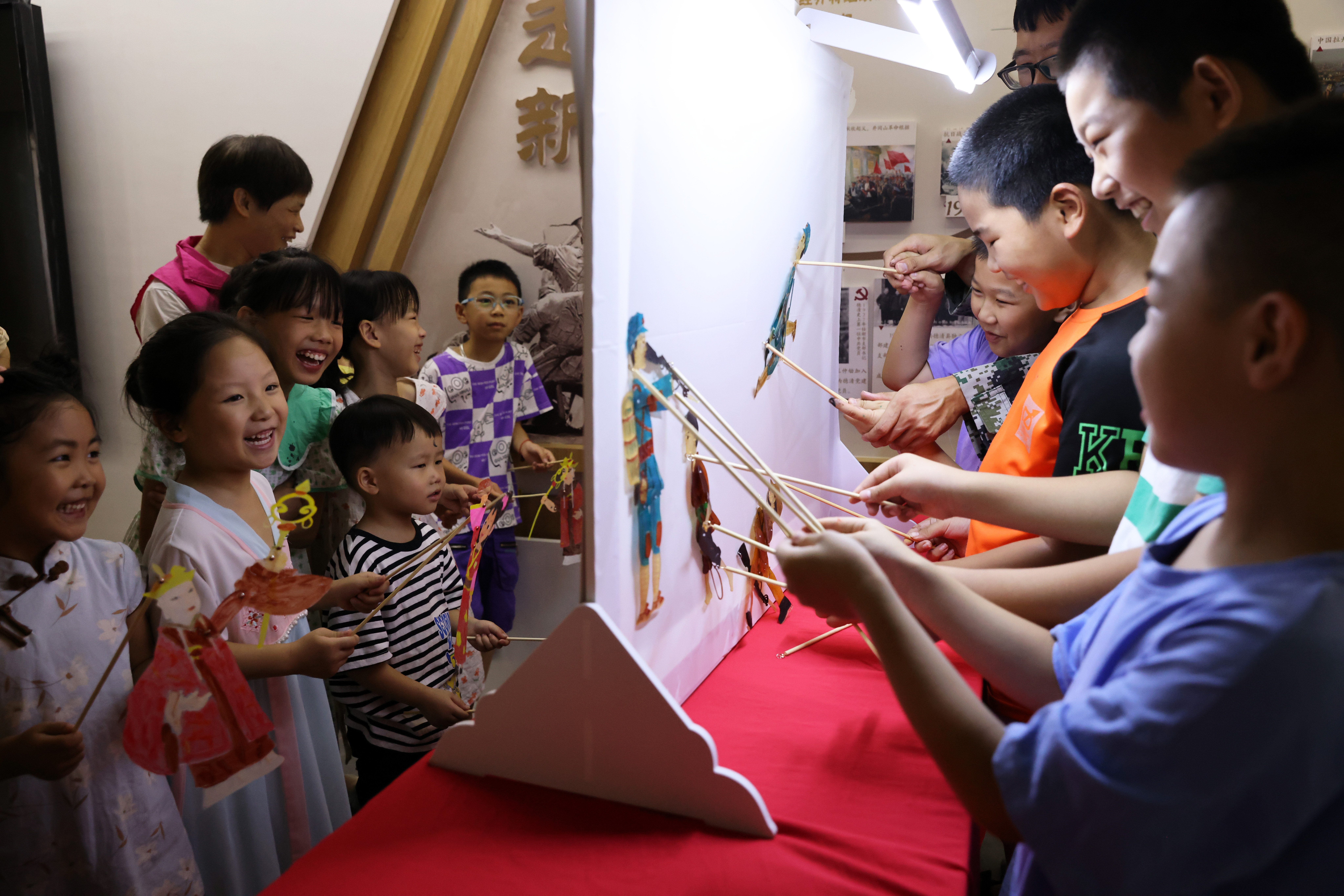 8月14日,浙江省湖州市德清縣乾元鎮退役軍人服務站、民政辦聯手開展“抗日皮影戲 快樂‘小候鳥’”活動,孩子們在志愿者的指導下,表演抗日小英雄王二小戰斗故事的皮影戲,銘記光輝黨史,傳承紅色血脈,豐富暑假生活,迎接8月15日抗日戰爭勝利紀念日。中國教育報—中國教育新聞網通訊員 倪立芳 攝
