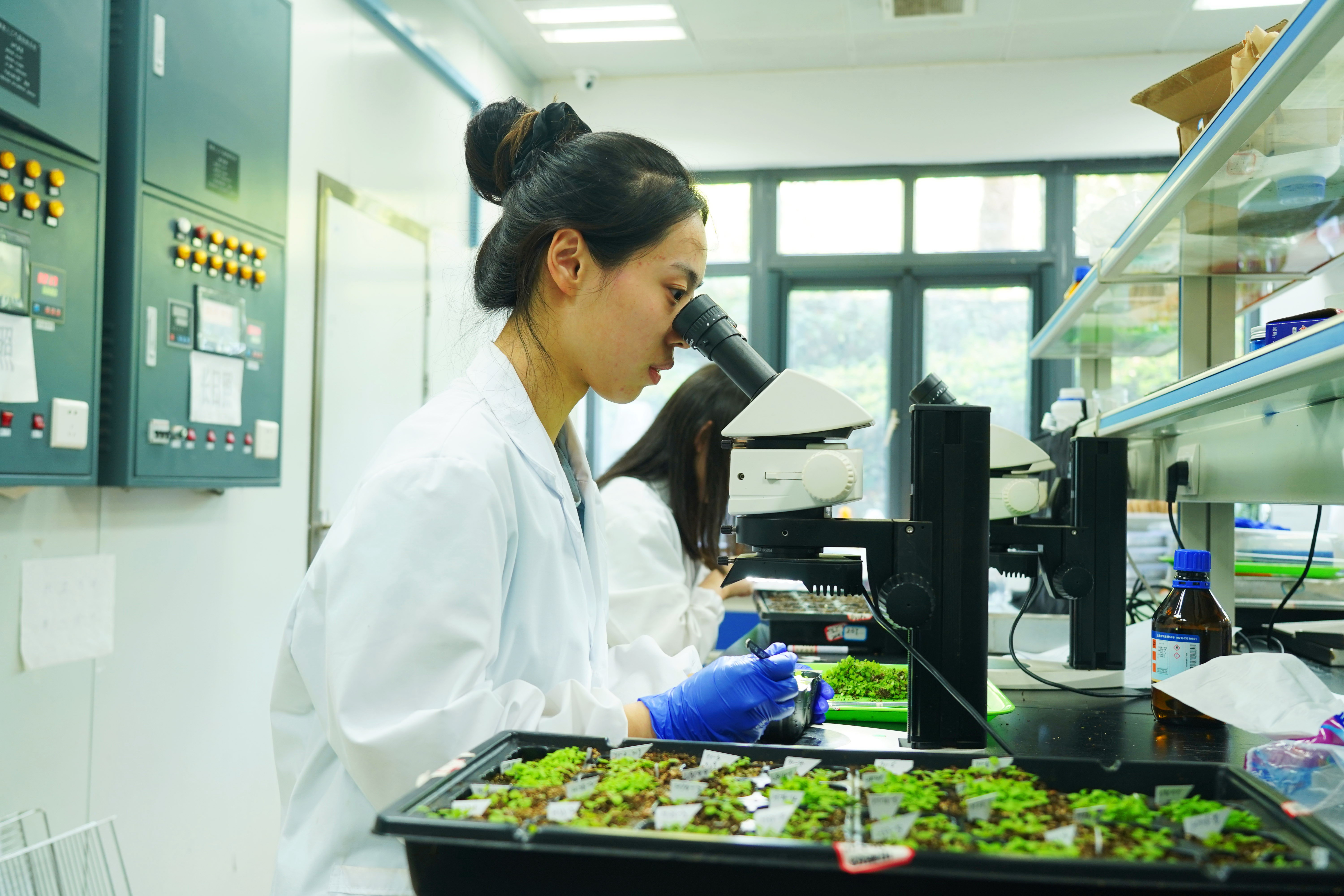 浙江農林大學現代農學院的實驗室里,暑期留校的學生正在忙著做實驗。通訊員 陳勝偉 攝