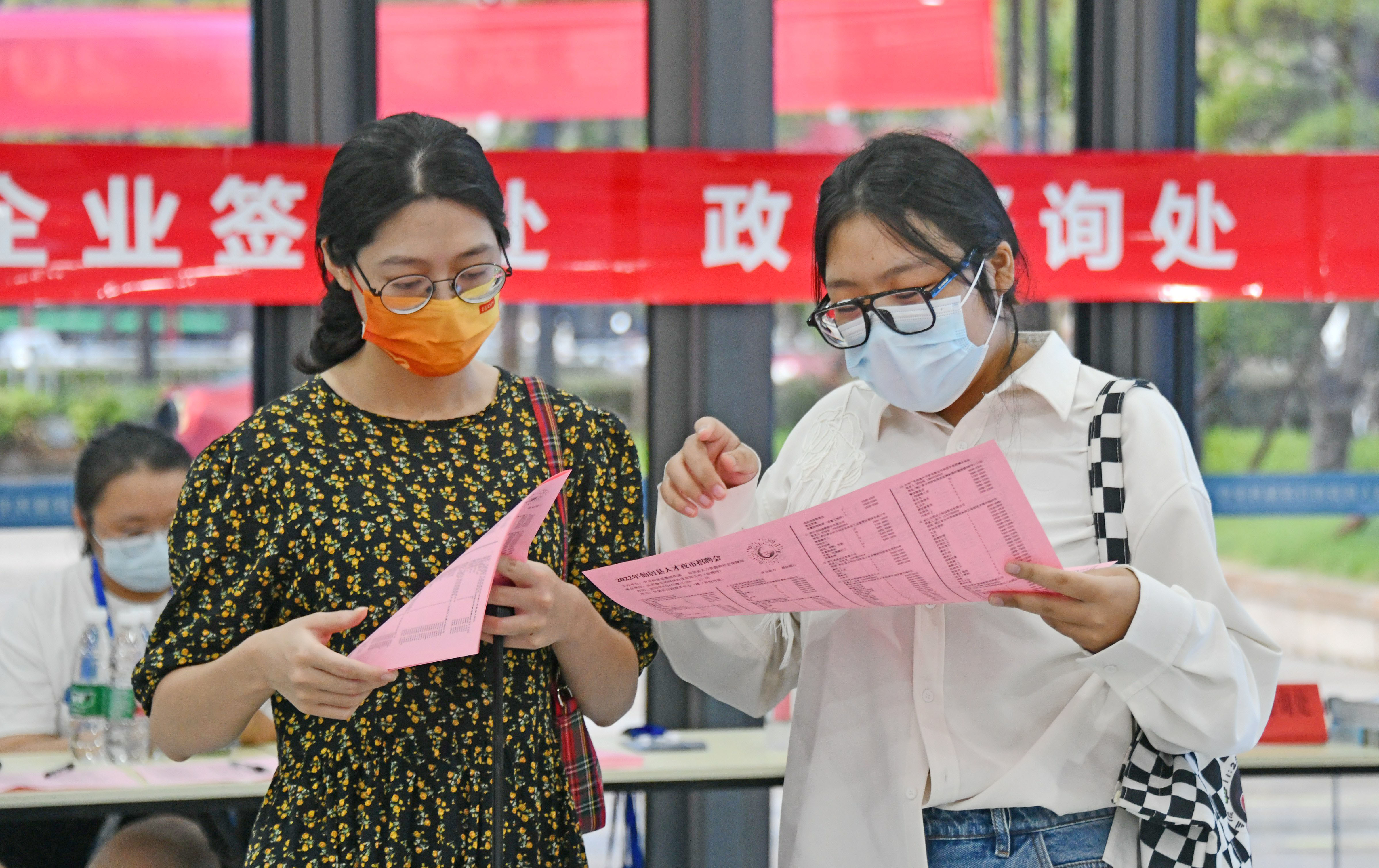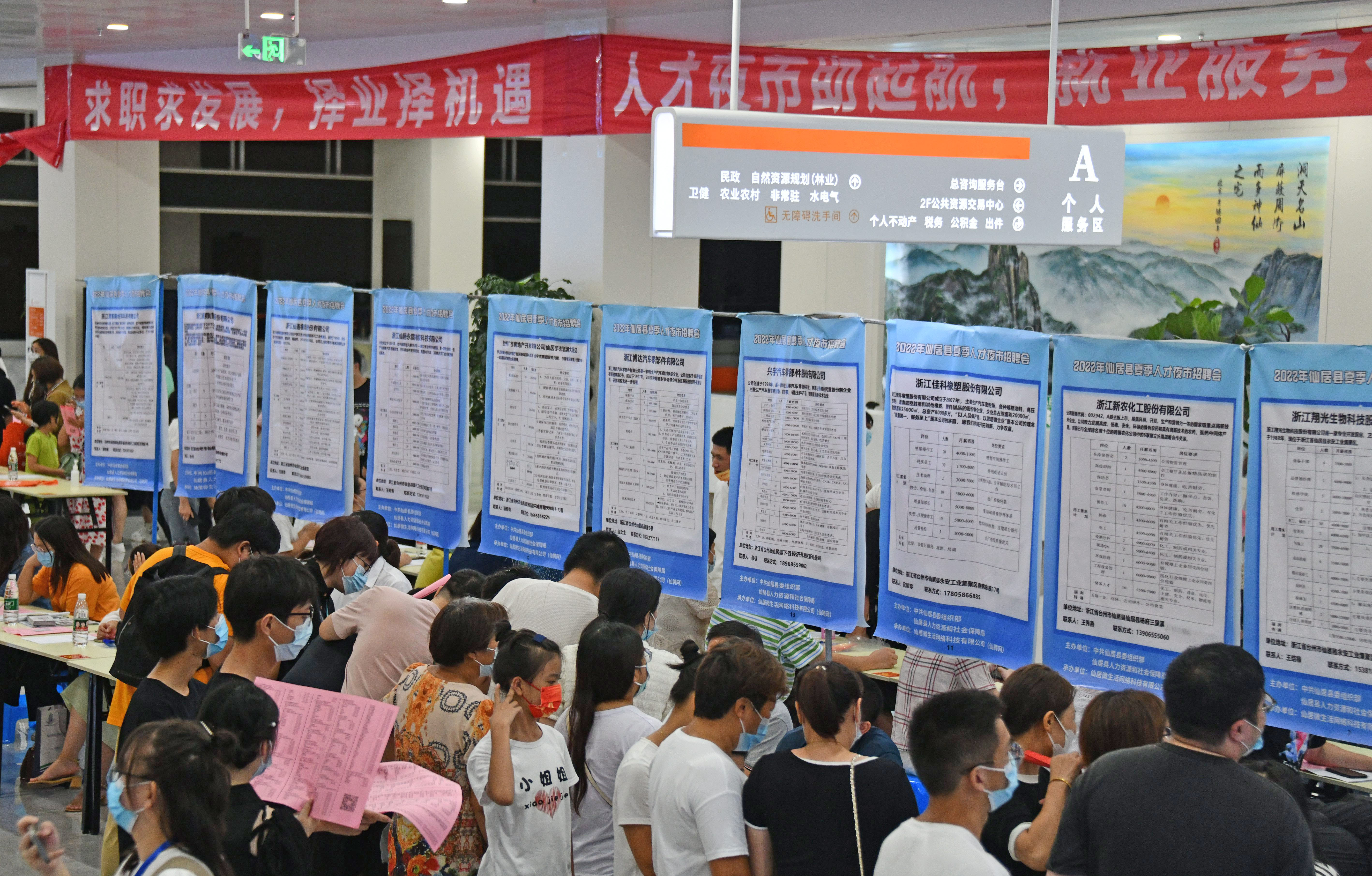 8月6日晚,求職者在浙江省臺州市仙居縣“人才夜市”尋找崗位。為進一步促進高校畢業生等群體就業,當晚,仙居縣2022年第二場“人才夜市”招聘會再次在縣行政服務中心開張,當地53家企業提供2180多個就業崗位,吸引眾多求職者前來咨詢應聘。通訊員 王華斌 攝