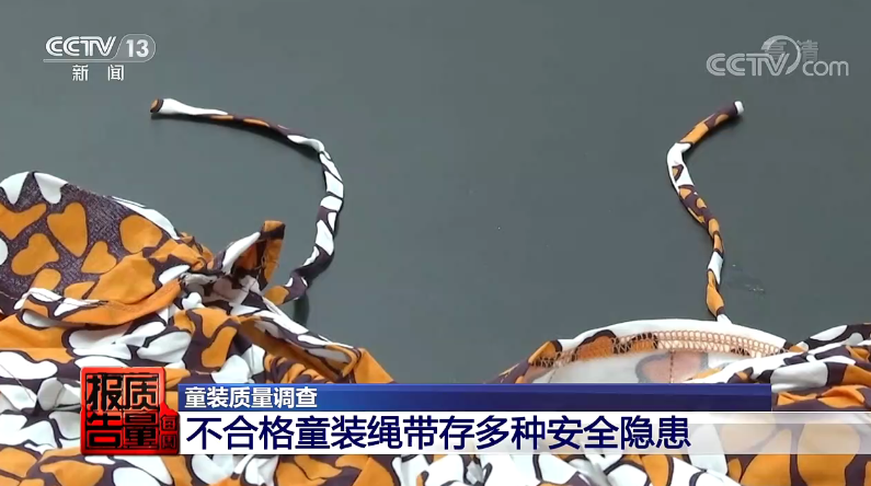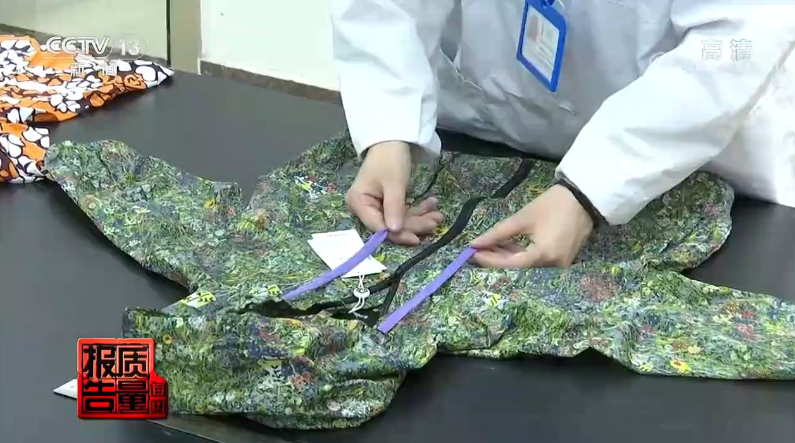 兒童服裝不同部位的繩帶帶來的風險點多種多樣,不少兒童服裝造型時尚、顏色鮮艷,但是檢測工程師介紹,這些服裝繩帶長度其實都超過了國家標準的要求,像頭頸部帶有抽拉繩帶的服裝,繩帶不管長短,只要是七歲以下兒童能夠穿用,就屬于不合格產品。