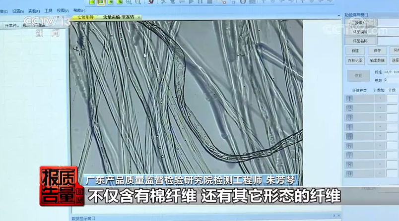 但是檢測發現,標注是“100%棉”的可能里面摻雜了大量的化學纖維,標注名為“主要材料”的實際上含量也達不到。像這款產品標簽標注是“100%棉”,可是在顯微鏡下發現棉纖維的形態只占了一小部分。