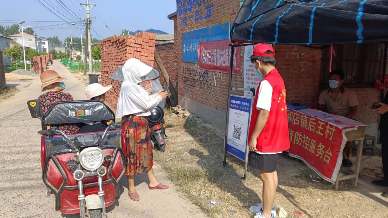 大學(xué)生志愿者許越引導(dǎo)過往群眾掃碼登記