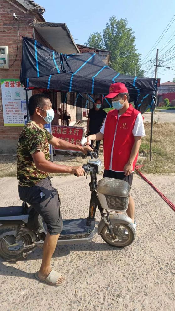 大學(xué)生志愿者許越為過往行人測(cè)溫