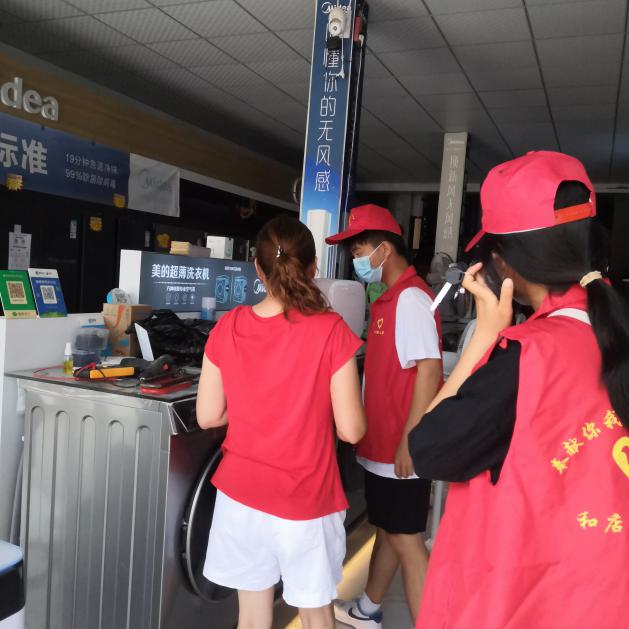 志愿者在街道檢查商鋪規(guī)范使用場(chǎng)所碼