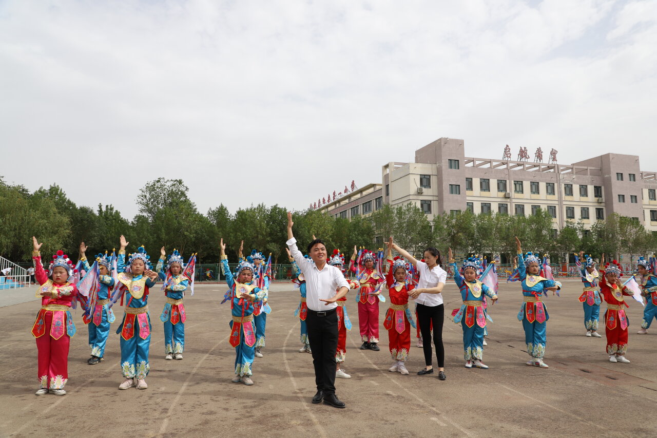 新疆維吾爾自治區吐魯番市的校園里,援疆教研員武麗華老師正在指導師生開展傳統文化教育。張勁松 攝