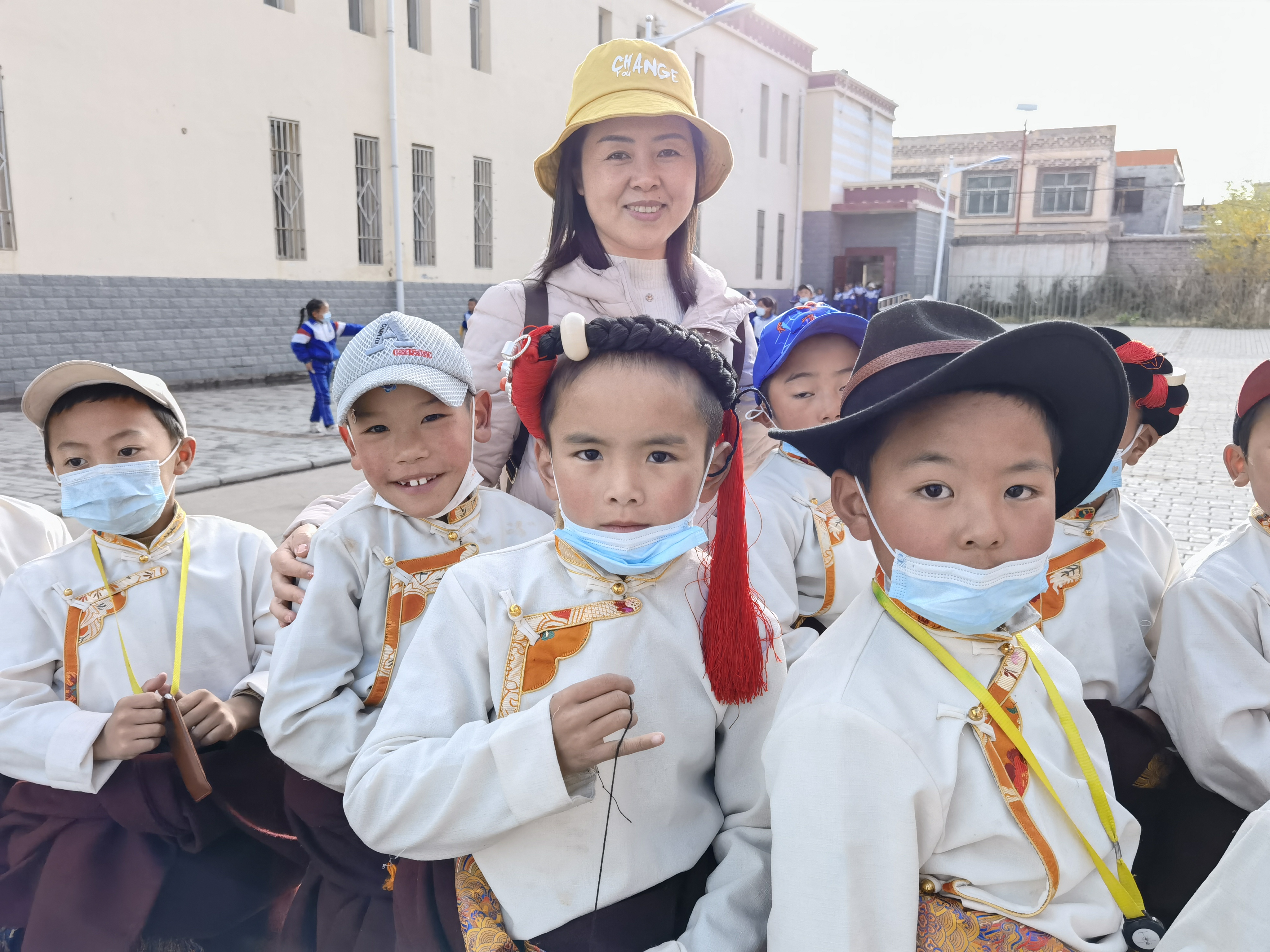北京援青教師禹寶琴和學生們在一起。劉建新 供圖