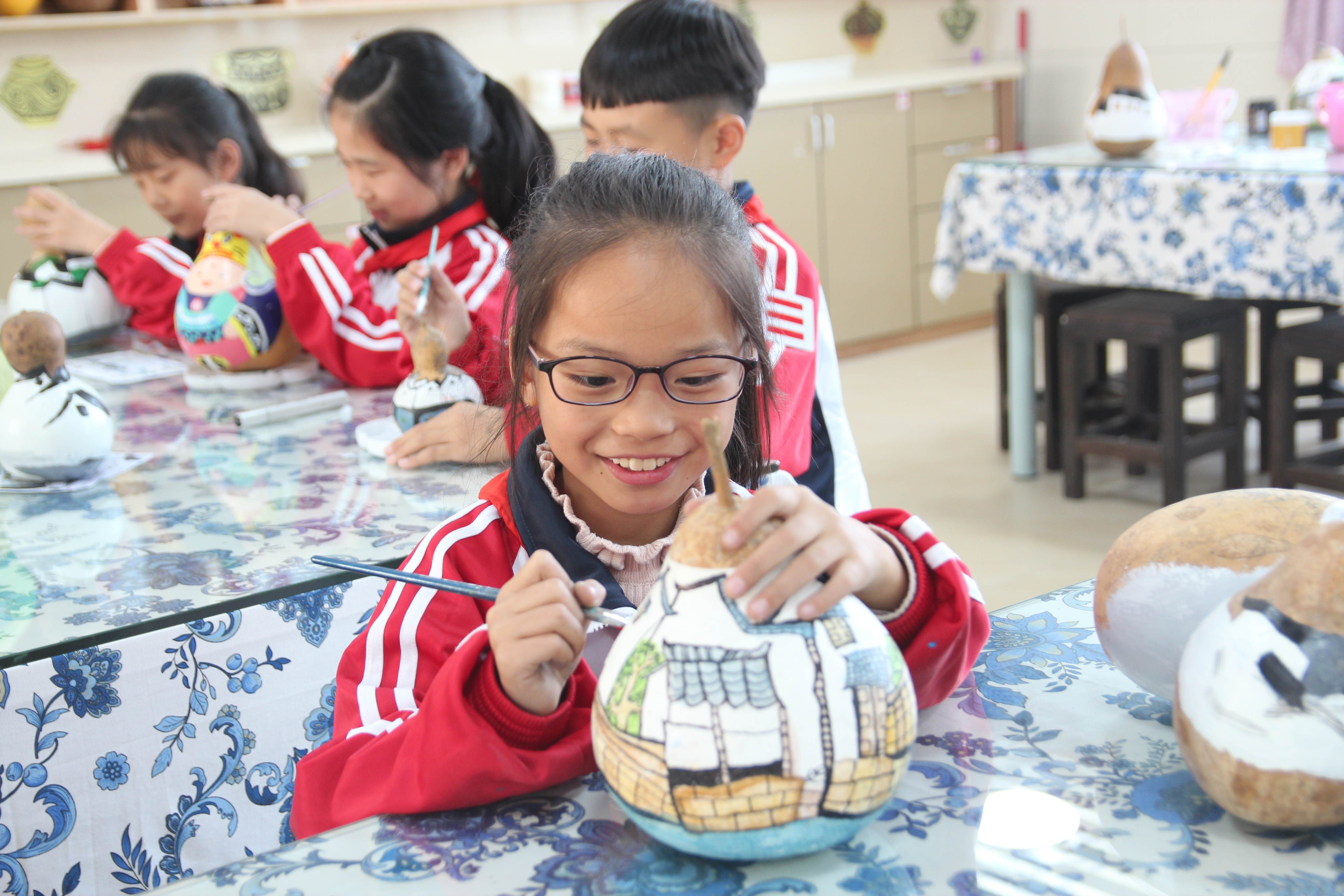 浙江省嘉興市海鹽縣官堂小學學生在學校上拓展性課程——七彩葫蘆課程。葉惠玉 供圖