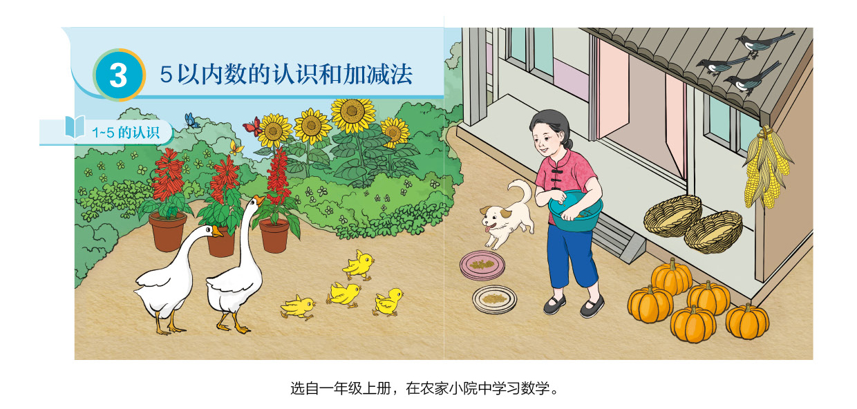 新繪制的小學(xué)數(shù)學(xué)教材插圖在整體上力求體現(xiàn)出“中國風”“時代感”“精氣神”和“數(shù)學(xué)味”的風格特點,展現(xiàn)新時代中國少年兒童陽光、向上、愉悅的精神面貌,堅持大眾主流審美取向,遵循兒童認知與身心發(fā)展規(guī)律,清新雅正,簡潔大方,圖文相融。