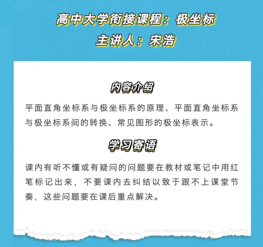 本期主題圍繞“高中大學銜接:極坐標”話題展開,擁有全網390萬粉絲,1.5億次高等數學視頻播放量的山東財經大學宋浩老師擔任主講。