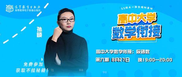中國教育新聞網(wǎng)訊(記者 焦小新)高等教育出版社舉辦的“高中大學數(shù)學銜接課”系列公益活動第六期將于8月27日晚7點至8點播出。