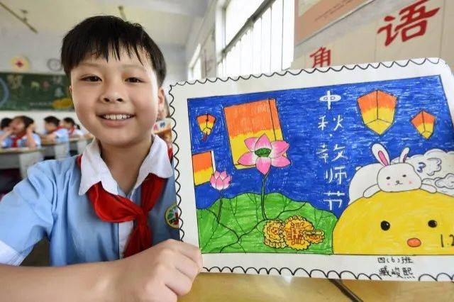 學生手繪“郵票賀卡”,把對教師的祝福繪制在賀卡上。張正友 攝