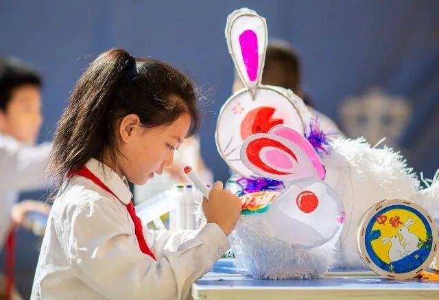學生在書寫中秋詩詞佳句。丁根厚 攝