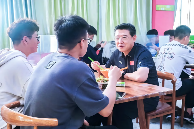 2日中午,校長白海力來到第一食堂與就餐學生們共進午餐共話發展,午餐在和諧輕松的氛圍中進行。白海力與同學們拉家常、聊近況,聆聽學生心聲,圍繞同學們的學習生活進行了深入的交流,他感謝同學們積極反饋學習生活中遇到的難題和對學校的訴求,表示學校將全力為同學們的健康成長發展創造條件。白海力還結合自己的求學成長經歷勉勵同學們要珍惜大學時光,全心投入專業學習,練就過硬本領,爭做時代先鋒。同學們深刻感受到學校堅持“以學生為中心”的良苦用心和滿滿的關心關愛。