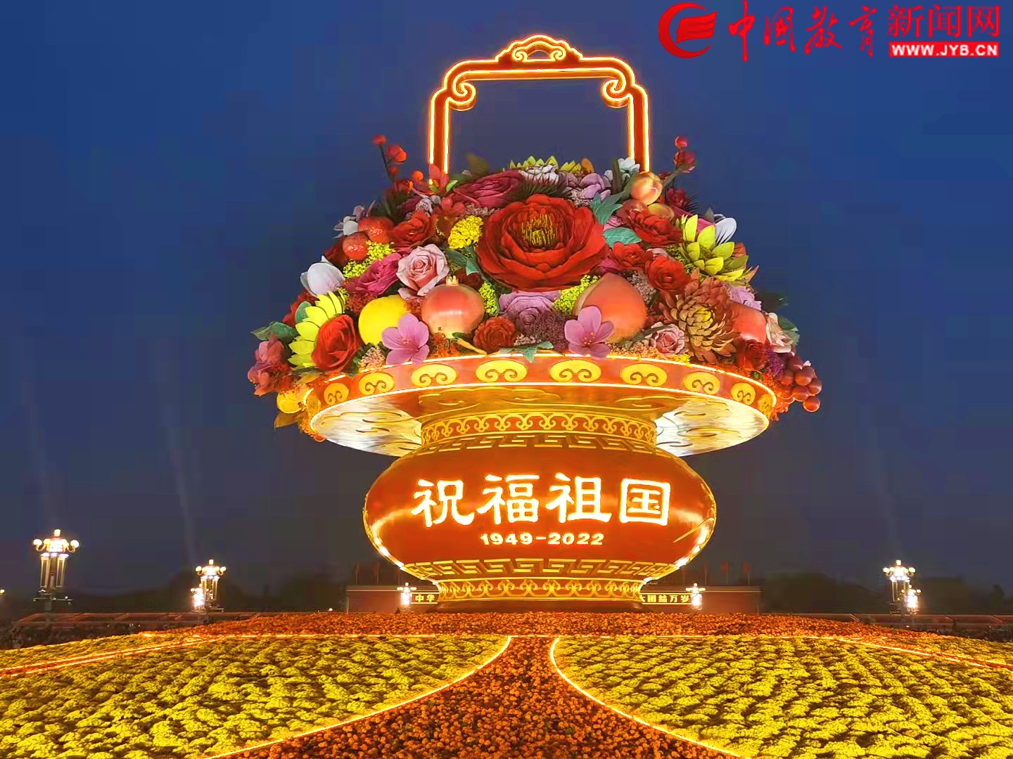 天安門(mén)廣場(chǎng)中央“祝福祖國(guó)”巨型花籃,