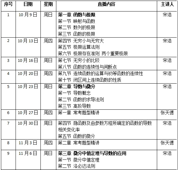 中國教育報-中國教育新聞網訊(記者 焦小新)新學期到來,為了幫助大學生深入理解課本知識,提升高數解題能力,高等教育出版社計劃從10月9日至12月15日開展“高等數學伴學計劃”系列活動之“高等數學(上)習題課”系列講座,共設置20場直播。