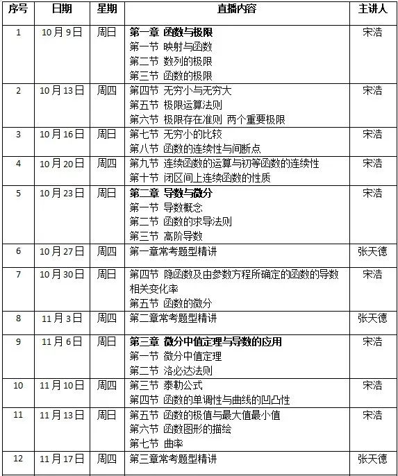 直播課時間為10月9日19:00-21:00。課程設置包括重難點精講、課后習題精解、互動答疑等環(huán)節(jié),幫助大家建立高數知識體系,迅速提升大家的解題能力。