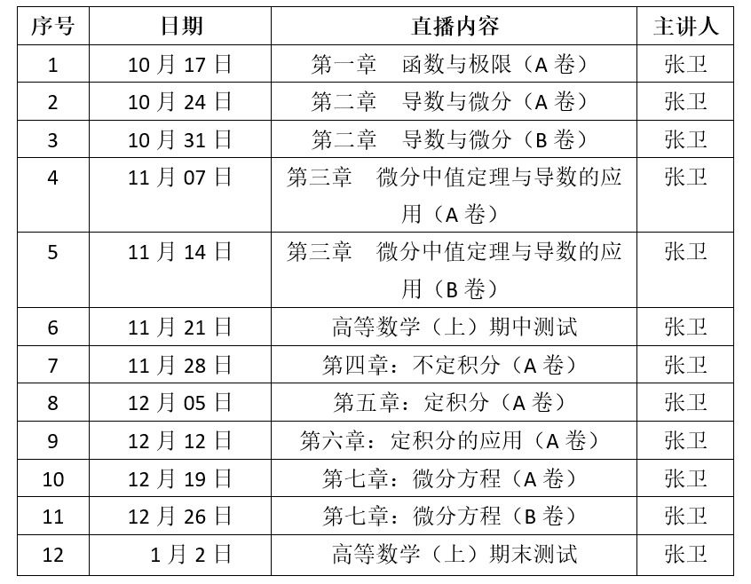 中國教育新聞網訊(記者 焦小新)高等教育出版社將于2022年10月17日至2023年1月2日推出“高等數學伴學計劃”系列活動之“高等數學(上)同步測試卷精講”直播課程(共12場)。主講教師張衛是數學考研名師,長期從事考研數學教學工作,擔任各大考研機構主講老師,已幫助數十萬學生考研上岸。
