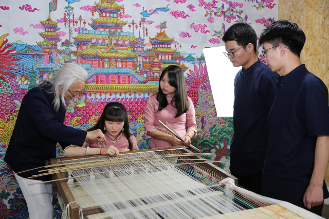 “錦”是古代絲織物中代表最高技術水平的織物。江蘇經貿職業技術學院大學生在非遺傳承人指導下,學習云錦織造工藝