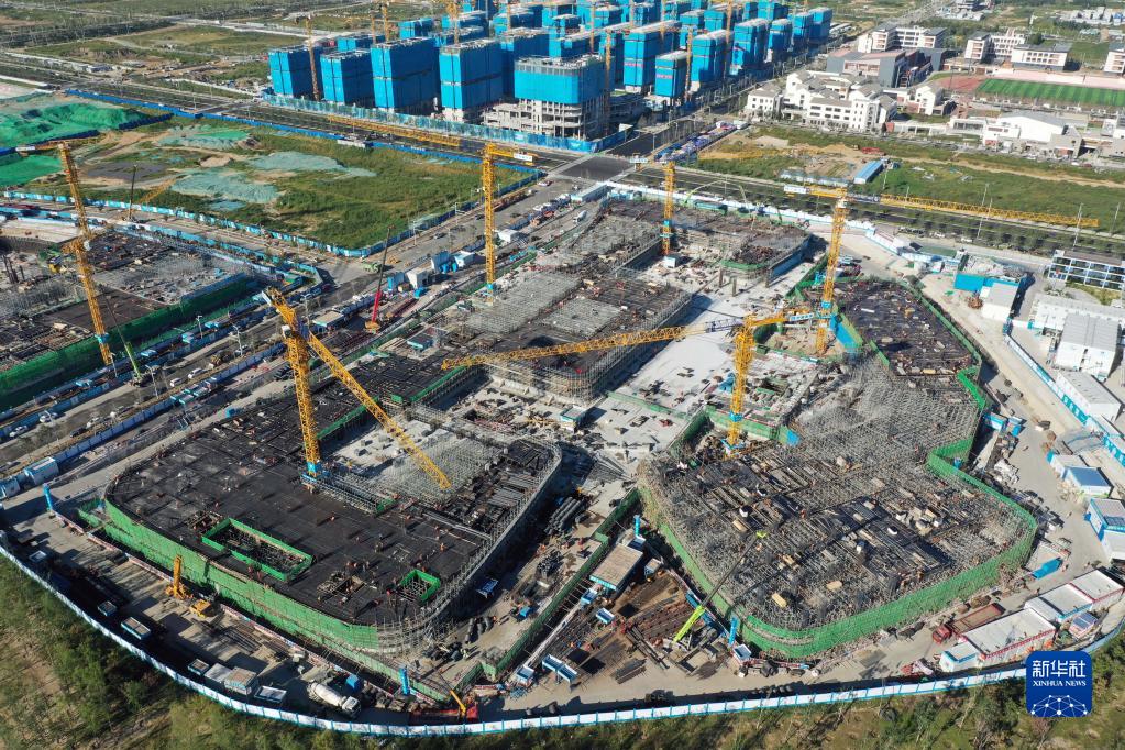 位于雄安新區啟動區的中國星網雄安新區總部大樓建設施工現場(2022年9月7日攝,無人機照片)。新華社記者 朱旭東 攝