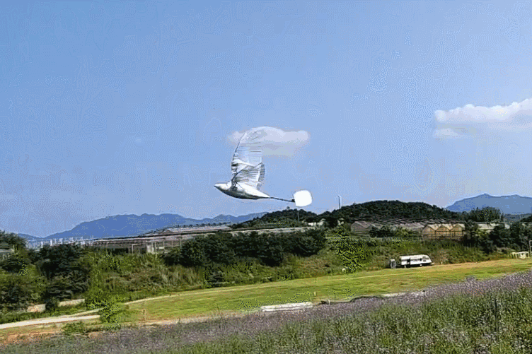 “雙關節大鳥型撲翼飛行器”飛行中。學校供圖