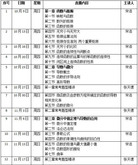 中國(guó)教育新聞網(wǎng)訊(記者 焦小新)高等教育出版社傾力打造的“高等數(shù)學(xué)伴學(xué)活動(dòng)”設(shè)置習(xí)題課、同步試卷精講、期末專項(xiàng)輔導(dǎo),三大訓(xùn)練營(yíng),邀請(qǐng)四大名師幫助大家通關(guān)高數(shù)。在習(xí)題課前四期的直播中,宋浩老師精講了高數(shù)(上)第一章,函數(shù)與極限相關(guān)知識(shí)點(diǎn)和課后習(xí)題。10月23日19:00開始將進(jìn)入第二章導(dǎo)數(shù)與微分,快快帶好教材和筆記本,開啟新的關(guān)卡吧!
