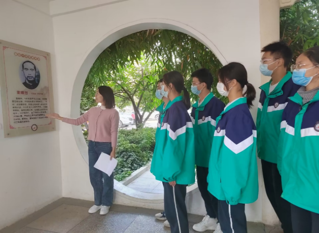 在杰出校友董曦轡的畫像前,伍丹娓娓道來,講述了董曦轡傾盡家產捐作革命經費的感人故事,引導學生們體悟董曦轡校友不計個人得失,公而忘私、甘于奉獻的廉潔精神。