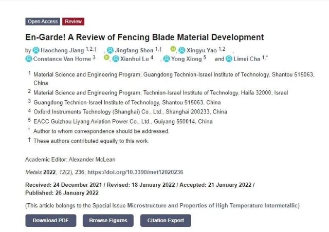 目前,廣以學生已有2個項目發表論文完成結項:材料科學與工程專業2017級學生江昊誠、姚星宇的項目“擊劍運動國產擊劍材料的創新改良”,以及2018級學生林洽、劉栩琦的項目“探究不同退火條件下TNM合金(Ti-Al-Nb-Mo)的微觀結構與力學性能的之間的關系”。兩個項目組的成員分別以共同第一作者的身份在知名學術期刊Metals上發表論文。