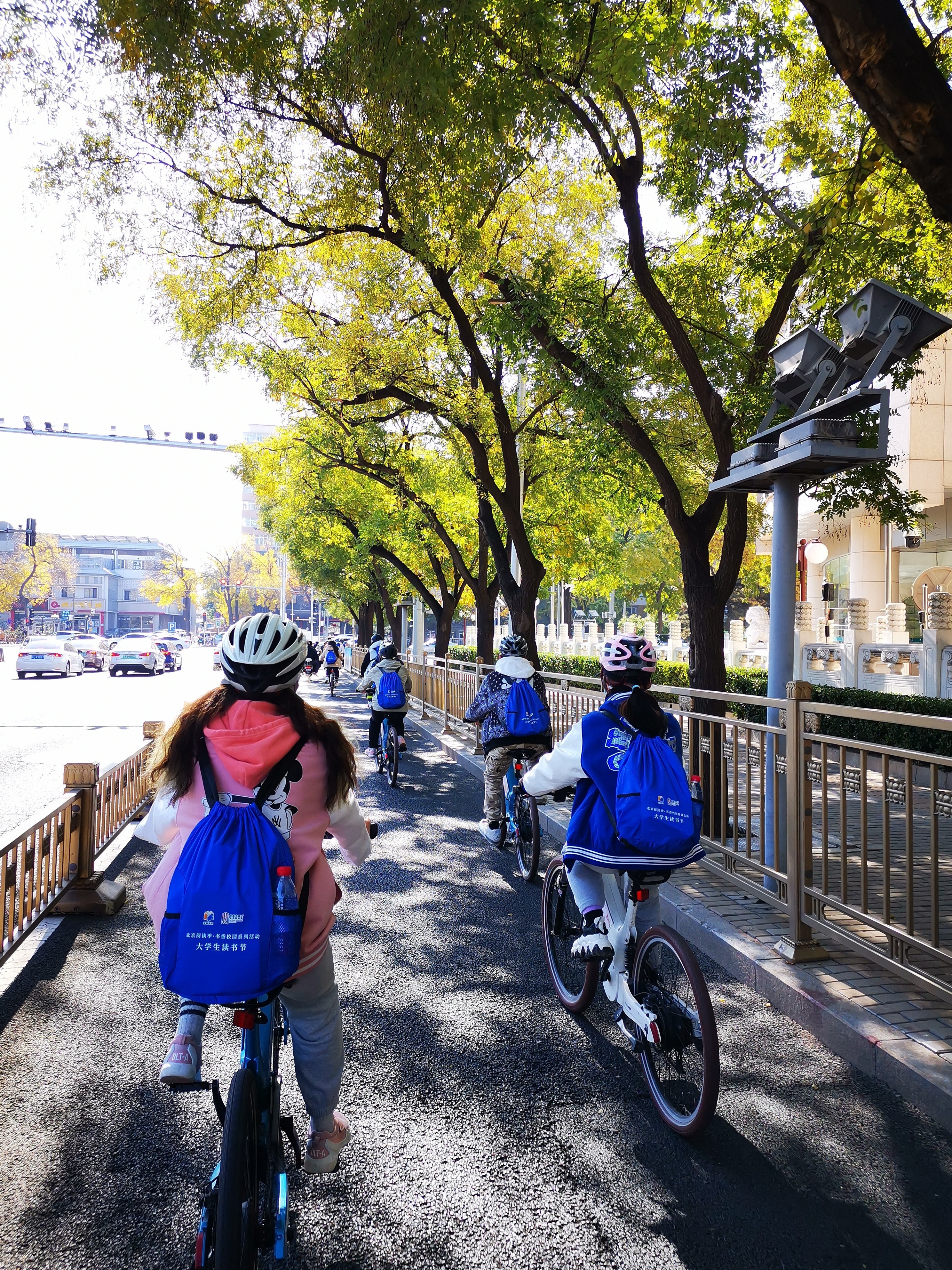 “北京中軸線走讀”活動以邊騎行,邊講解的方式開展。跟隨著趙凡老師的講解,師生們了解了鐘鼓樓在明清時期重要的報時作用,什剎海和萬寧橋的建造歷史,以及天安門、永定門的建筑特點和重要歷史意義……騎行在被譽為“城市設計建筑史奇跡”的北京中軸線上將古都風貌盡收眼底,師生們體驗了青磚灰瓦、悠然恬靜的秋日京韻。